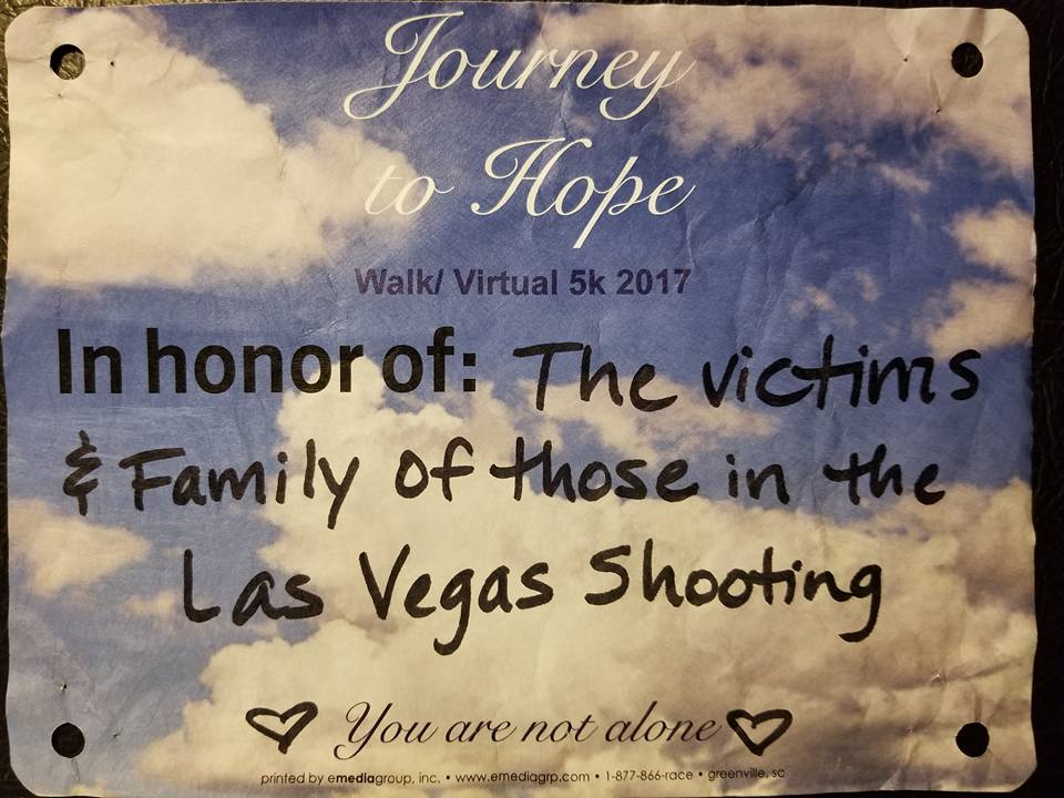 Journey to Hope is a walk event I put on earlier this year in April, to show love and support to people in their journey of grief, and to raise money for Grief Share. I still had some walk/5k bibs from the virtual portion left, as well as some 5k medals, and I didn't want them to go to waste. So I decided to ask people to make a donation to Grief Share, and in exchange I would run a 5k for their loved one and give them the medal, or they could have me run for a friend who lost someone, and I would send them a medal as a gift. Below is a photo of the medals/bibs I had left: